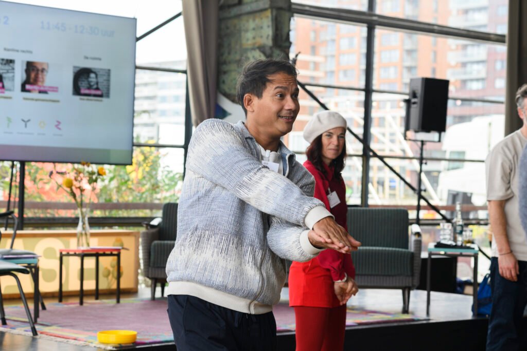 Het congres bracht een mix samen van professionals uit de formele en informele velden: van welzijnsorganisaties tot ervaringsdeskundigen en betrokken buurtbewoners. Samen onderzochten we hoe zorgzame netwerken versterkt kunnen worden. Dagvoorzitter Daniel Grmazion leidde ons door een inspirerende ochtend vol ontmoeting, verhalen en scherpe inzichten. De uitspraak van Bram Dingemanse vatte de dag perfect samen: “Meer gemeenschap, minder GGZ.”
